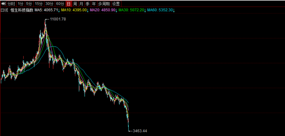 在这种不确定性之下,中概股就遭到了血洗了,外资无脑斩仓,引发了流动性危机,连腾讯都已经腰斩了,美团只剩下6500亿港币了,要知道巅峰时期,它可是逼近3万亿港币。