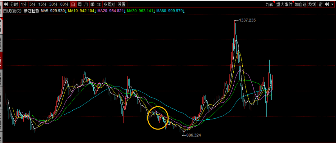 就别说赶上新冠检测的板块走势了,甚至像破产股的走势。
