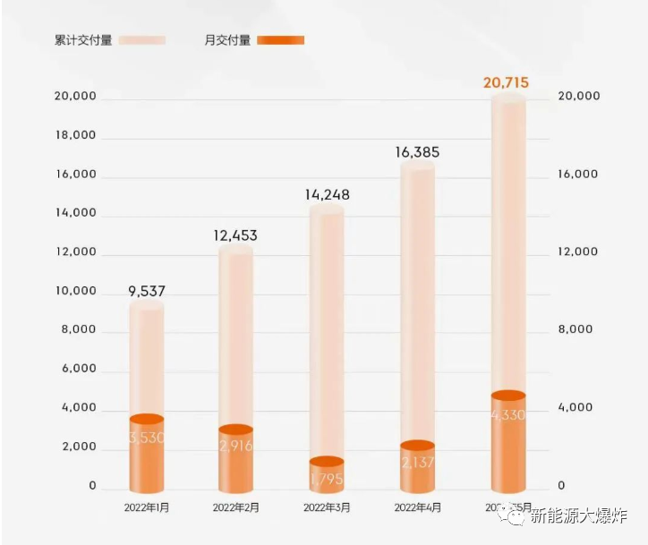 极氪001 5月交付4330台,较4月环比翻倍,创下单月销量历史新高。