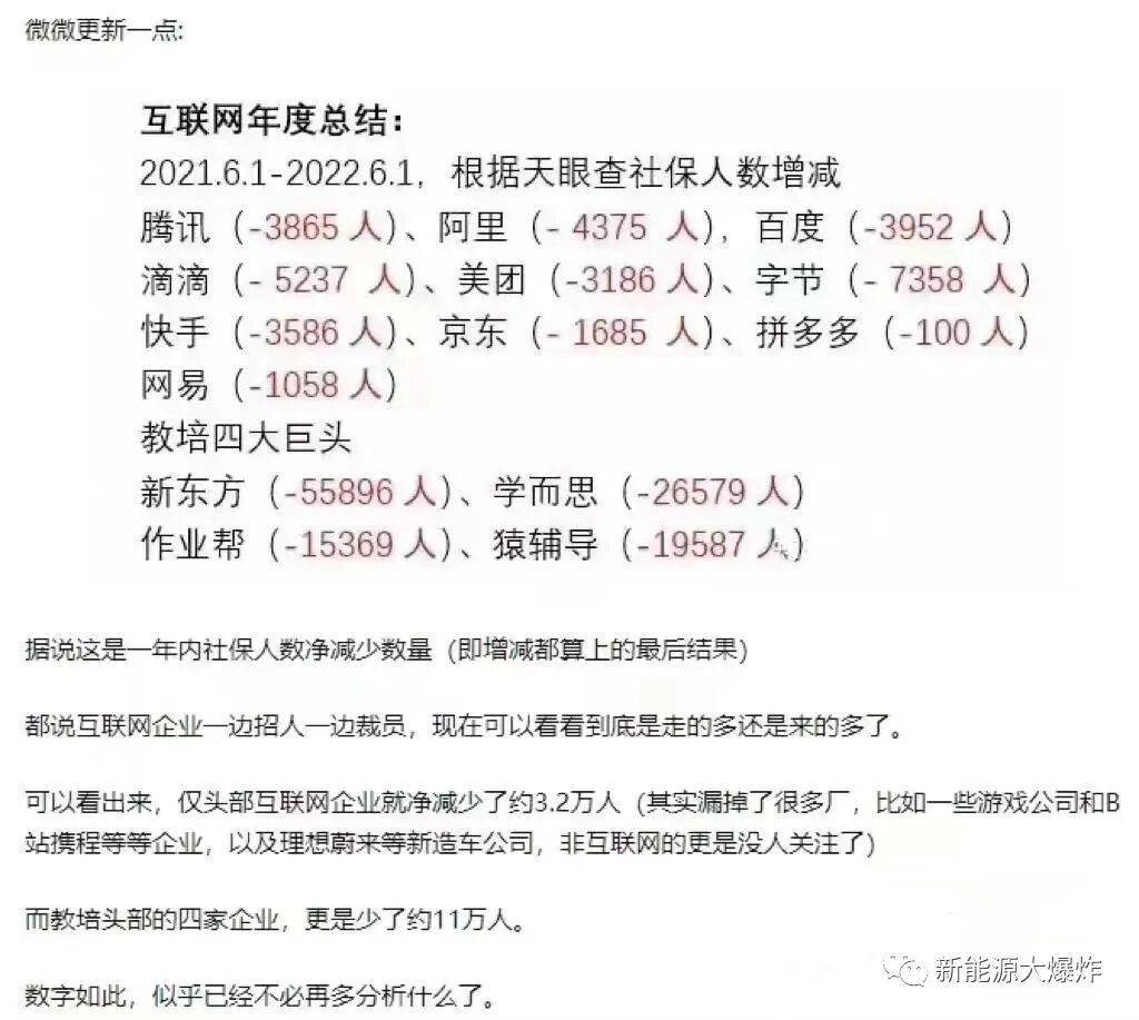 leo也是互联网行业出身的,跟业内的朋友确认过,大部分消息是真的,只是裁员比例没有网传的那么夸张而已。网上有人根据社保人数的增减了确认了互联网大厂确实是在减员。