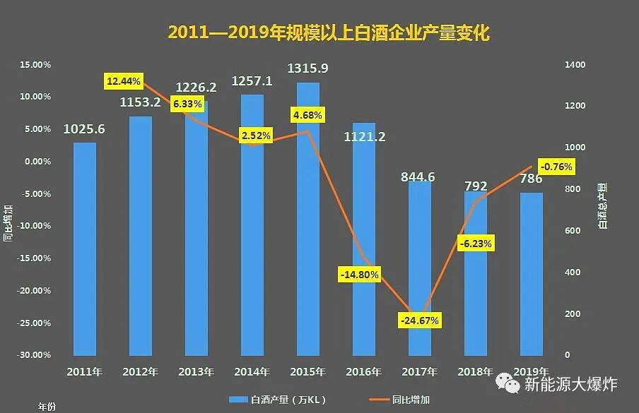 有一个数据可以从侧面验证这个问题,过去十几年,中国总人口一直是在增加的,但规模以上的白酒产量却是在逐步下降的。