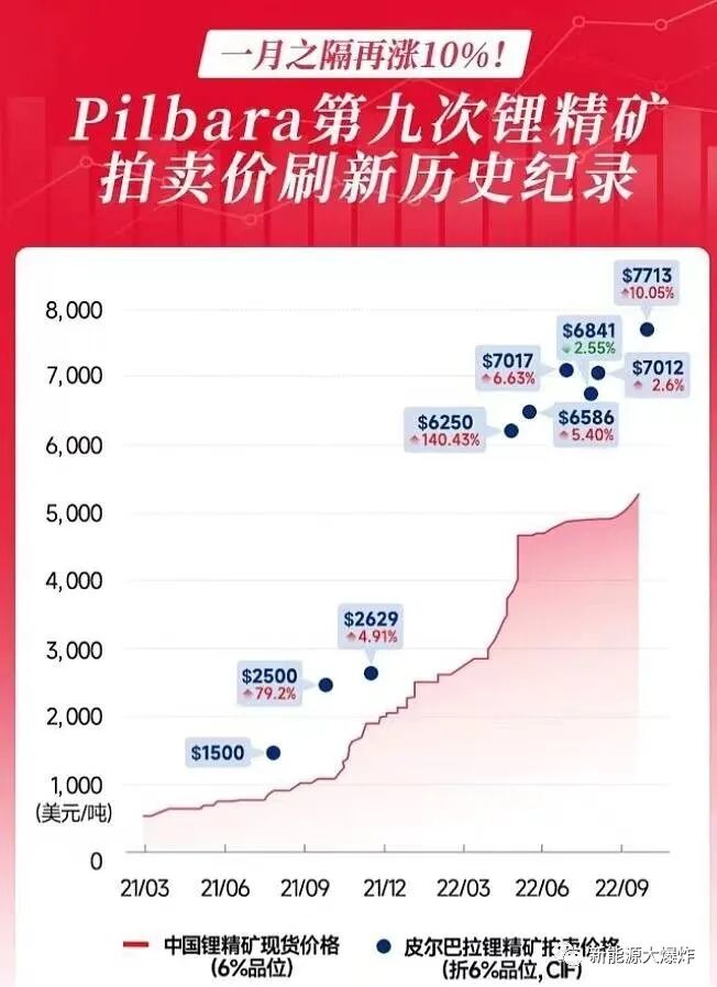 9月20日,PLS锂精矿完成第九次拍卖,最终成交价6988美元/吨(FOB,5.5%氧化锂品位),拍卖数量5000干吨(+-10%),锂精矿拍卖价格再次创新高!