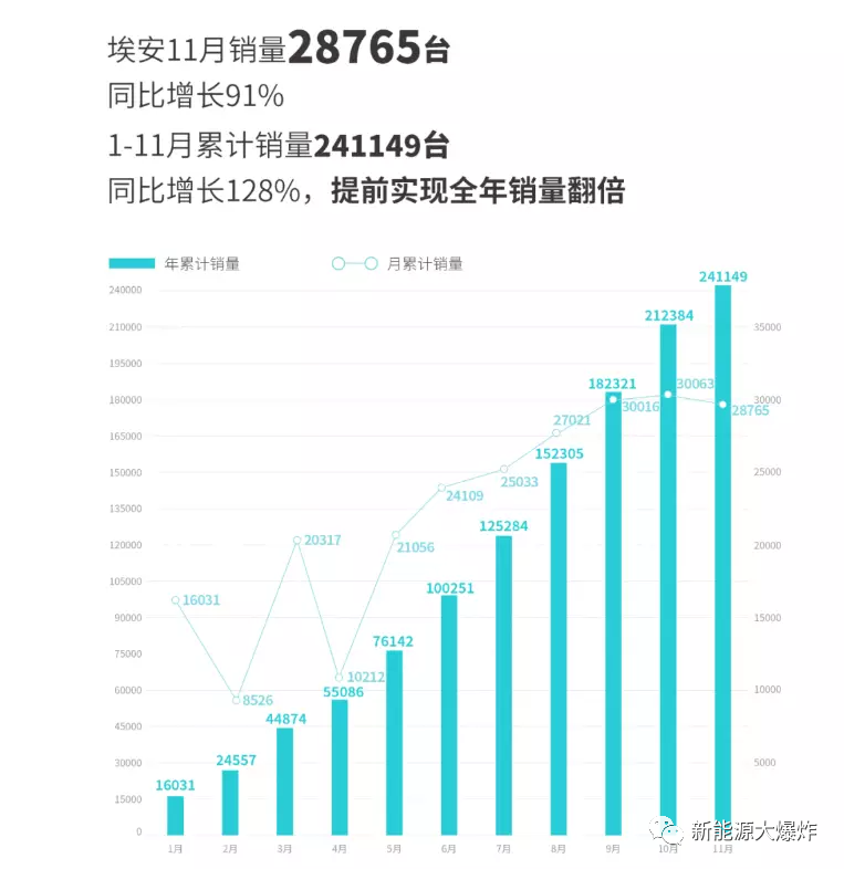 11月,比亚迪汽车总销量230,427辆,同比增长134.3%,环比增长环比增长4.5%,截至11月底它的新能源累销已超310万辆。