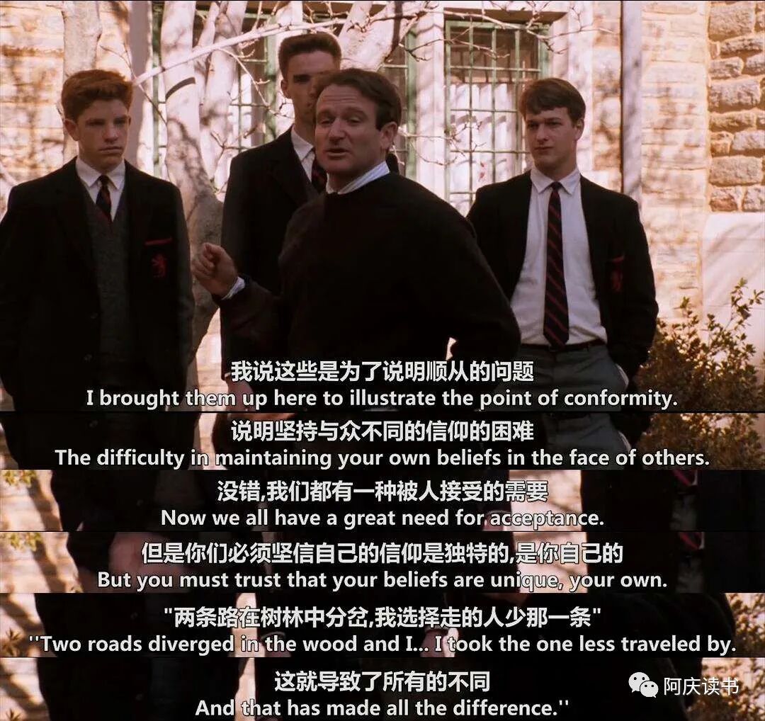 电影的开头,我们看到的是一群被严格规训、缺乏个性的学生。他们身穿统一的校服,迈着整齐的步伐,仿佛是被编程好的机器人。然而,基汀老师的出现,如同一股清流,打破了这潭死水。他鼓励学生们站在课桌上,用全新的视角看世界;他引导他们聆听自己内心的声音,追求真正的热爱。