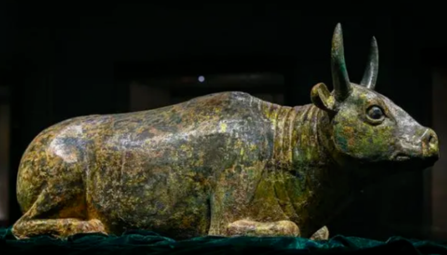 他们小心翼翼地清理掉覆盖在上面的泥土,一座宏伟的古墓逐渐展现在他们眼前。随着挖掘的深入,他们发现了一个令人惊叹的景象——一头鎏金铜牛。