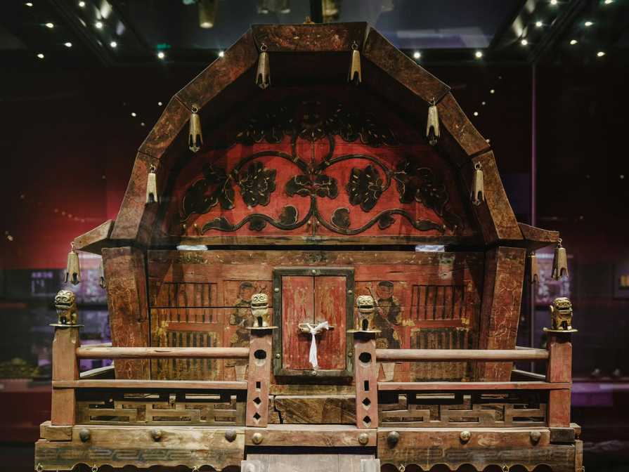 这座古墓的发现过程充满了曲折。隐秘的石洞和墓道显示出其主人的心思缜密和设计巧妙,让人不禁猜想这座墓究竟是为了何种目的而建。随着对墓葬的进一步探索,专家们发现了血色巨棺。这具巨棺的外观之精美、设计之独特令人叹为观止。棺身上的彩绘和铜狮装饰无不彰显着其高贵与华丽,仿佛在诉说着一段曾经的辉煌历史。