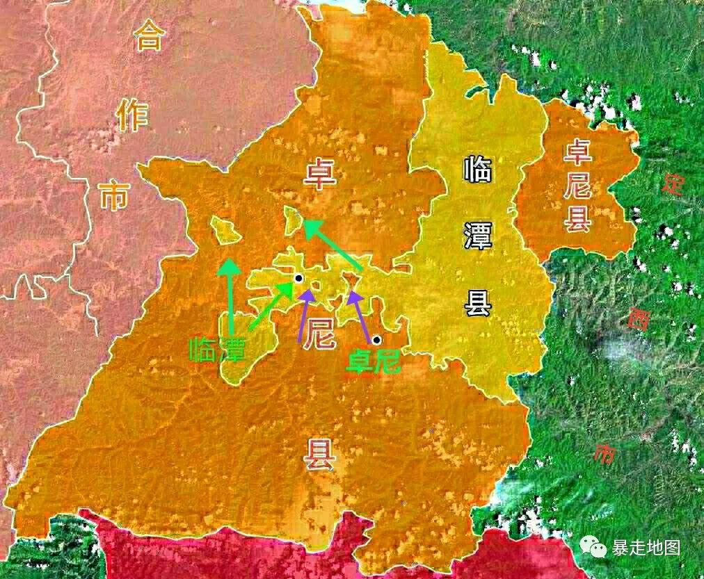 不仅如此,在不远处还有两小块属于临潭土地,完全被卓尼包围形成了“飞地”!