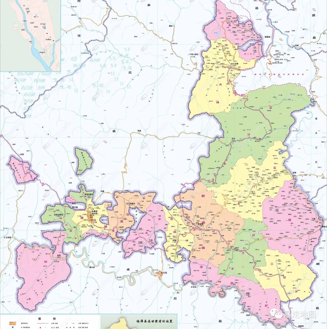临潭面积稍小,整体嵌入到卓尼境内,而西侧小部分“触角”更是蜿蜒深入到了卓尼腹地,县界异常曲折,而且县城也设在这里。