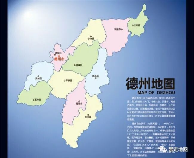德州市位于山东西北部,是华东、华北重要的交通枢纽,面积约1万平方公里,辖两区七县代管两个县级市。