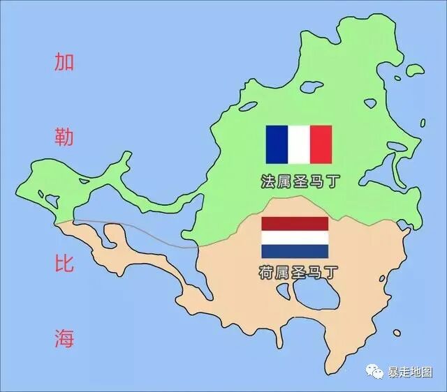 如今这个小岛已经保持两国分治的状态三百多年了,有趣的是,荷兰和法国在欧洲大陆没有接壤,而在千里之外的加勒比小岛上成了邻国。岛上荷、法各有一座首府和机场,不过两国本着和平共处的原则,任何人穿越岛上荷法边界都不需要任何手续,也没有任何守卫。