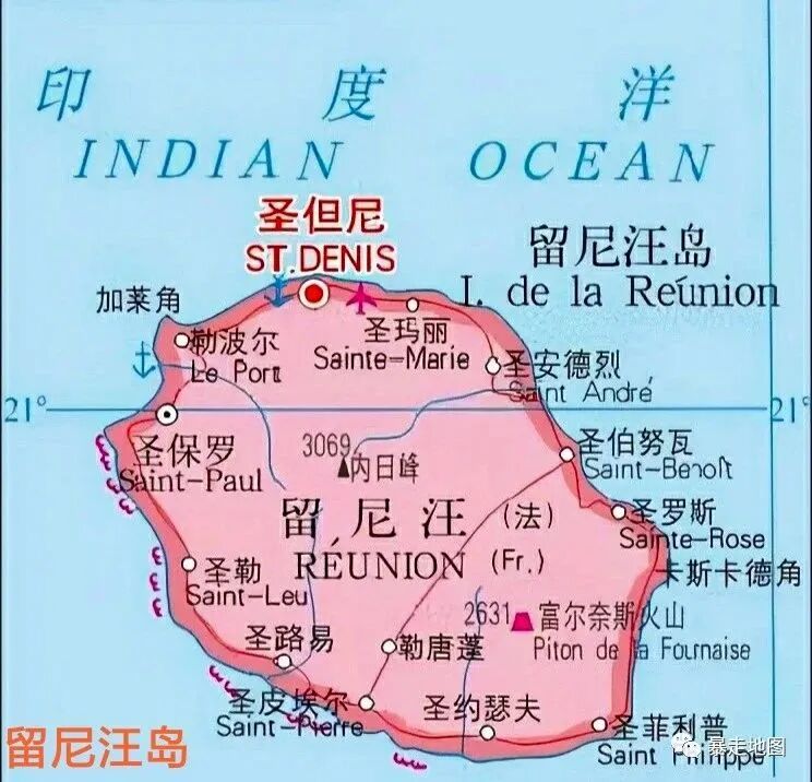 留尼汪是法国在印度洋的一个大区,留尼汪岛是印度洋西部马斯克林群岛中的火山岛,东边约190公里是毛里求斯群岛,西边则与非洲第一大岛马达加斯加相距650公里。留尼汪岛面积2512平方公里,人口86万。海岸线长207公里。除沿岸有狭窄平原外,均属山地和高原,岛上格罗莫讷火山高达3019米,沿岸属热带雨林气候,终年湿热;内部山地为高山气候,温和凉爽。