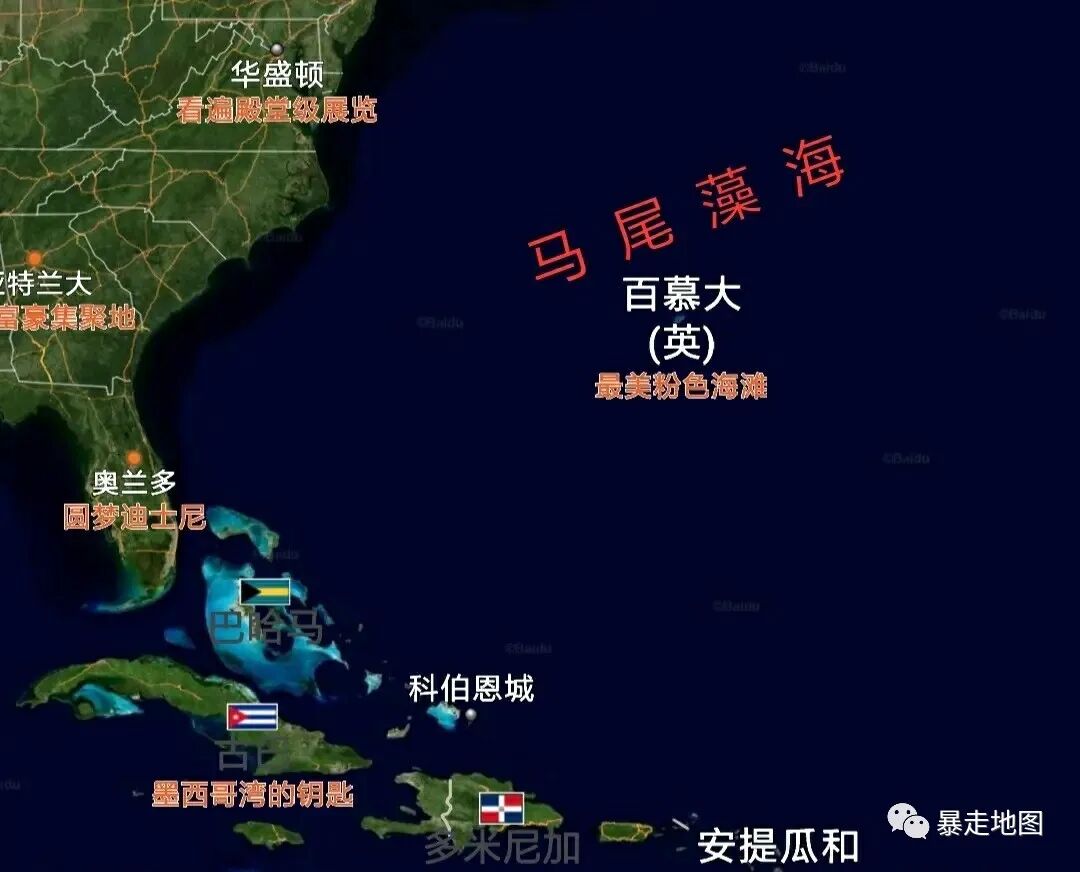 在美国佛罗里达半岛东北部约2000公里的洋面上,散落着一片美丽的岛屿,百慕大群岛。百慕大群岛位于北纬30度附近,这里海水清澈,风光旖旎,有着世界上最美丽的粉色海滩,是世界著名的旅游度假圣地,而环绕着百慕大群岛的海域就是马尾藻海。