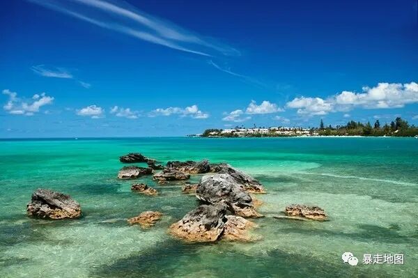 百慕大群岛地处亚热带海域,远离江河入海口,浮游生物很少,海水清澈,海岛风光旖旎,盐度很高,大西洋盐度就很高了,而这里又是大西洋盐度最高的海域,所以这里海水碧绿湛蓝,透明度可达70米,是公认的世界上透明度最高的海域。