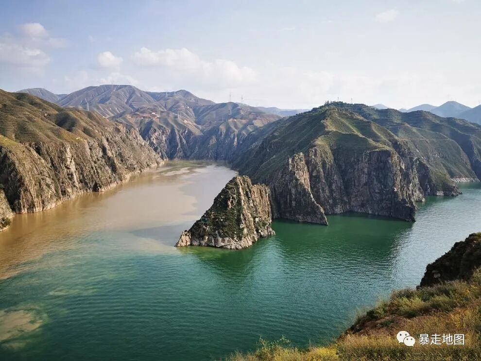 黄河流经临夏州境内达103公里,刘家峡水库位于永靖县城西南1公里处,水库湖面辽阔,风光旖旎,环境优雅,水质好,无污染,“天下黄河刘家峡清”,也只有在刘家峡及其上游才能看到如此清澈的黄河水了。洮河与黄河交汇处,水面出现了明显的黄绿两色,“泾渭分明”,意外的是青绿色的是黄河,浑黄的是洮河,因为它穿越了陇西黄土地区,裹挟了大量泥沙,在这里,洮河反而看起来更像印象中的“黄河”。