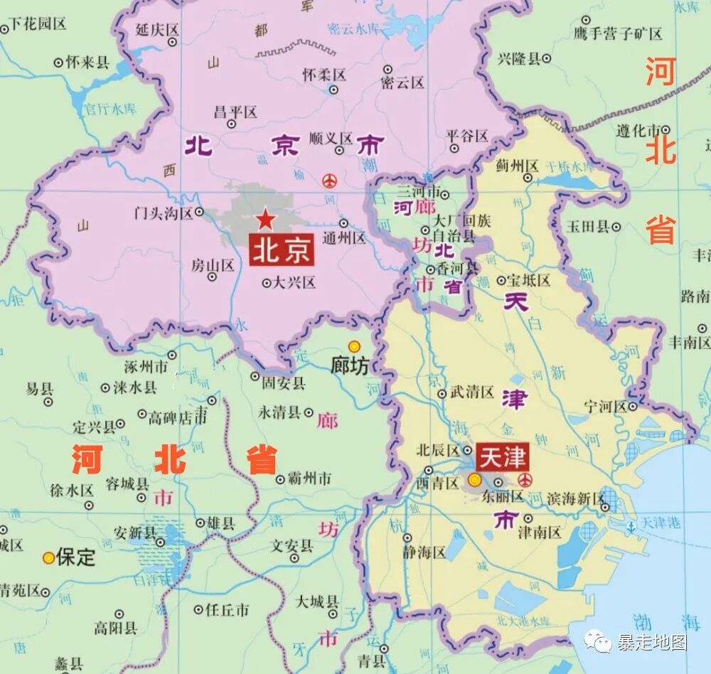 北三县是我国最著名的一块飞地,这块儿属于河北省廊坊市的地方夹在北京的天津中间,与河北省本土不相连。如果想从河北本土去这里,必须要经过北京或者天津的地盘。