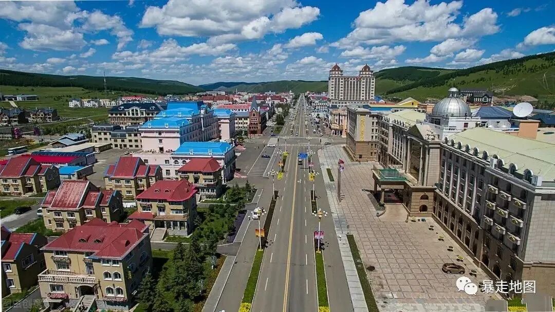 整座城市坐落在一个山坳里,周围青山环绕,林海葱葱,在松林和桦树掩映之中;温泉路是全城唯一的主干道,城区从南到北仅有2公里,东西也就二三百米宽,主路两边交叉着一些小巷子,里面藏着几家卖干蘑菇和特产的店铺,还有几家蒙族特色小餐馆,一眼就能看得到头。