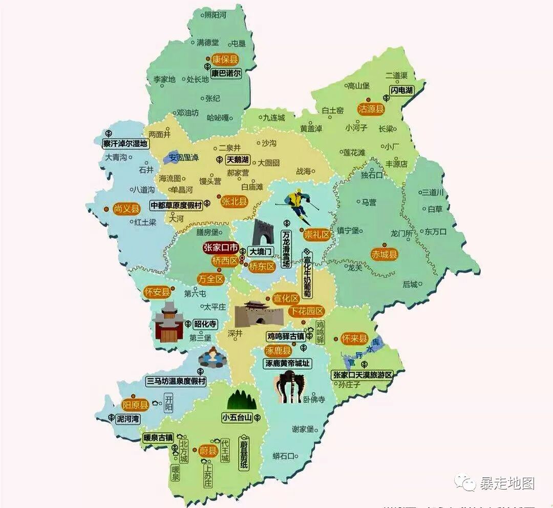 首先我们看看张家的“老大”张家口。张家口别称张垣,位于河北省最北部,全市总面积3.68万平方公里,辖6个区10个县,全市总人口约407万。