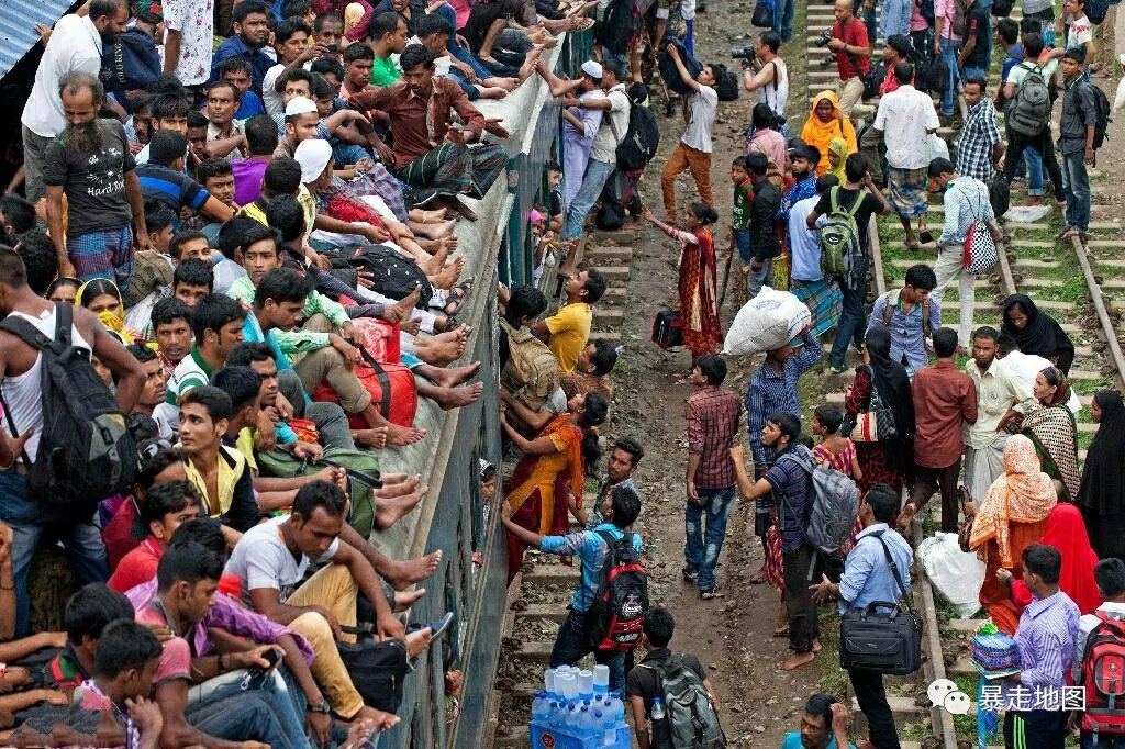在孟加拉,你每次出门目之所及全都是密密麻麻的人群,大街上整天都是拥堵的车辆和川流不息的人群,走到哪里都觉得像是在赶大集,有时候真的让人感觉窒息。都说印度的火车让人惊叹,那是你没见过孟加拉的火车,绝对有过之而无不及。