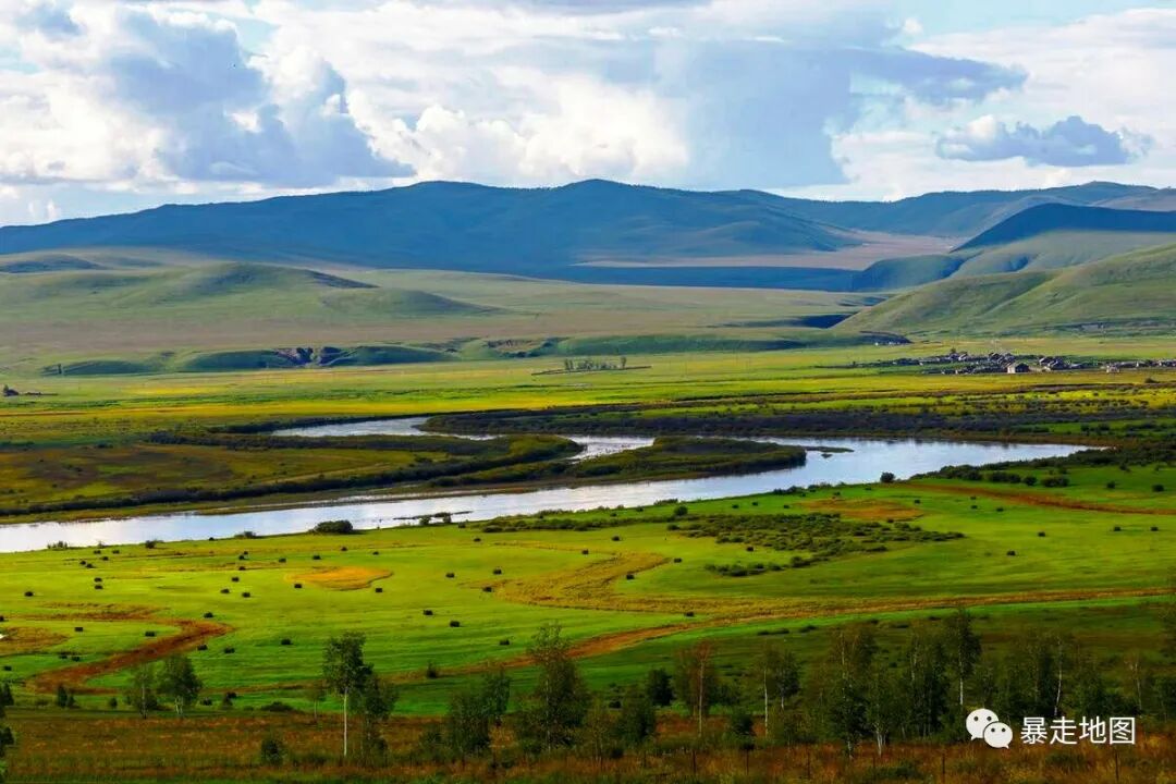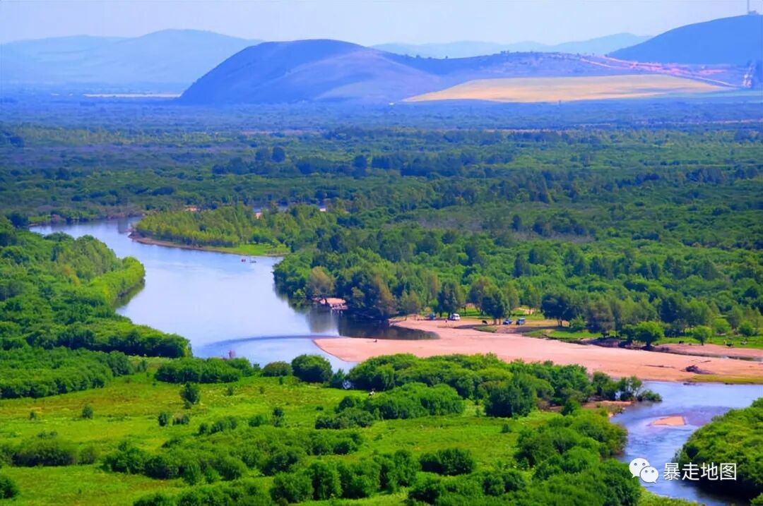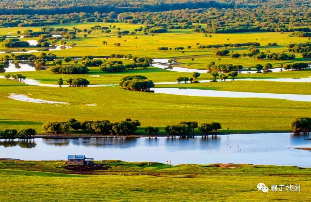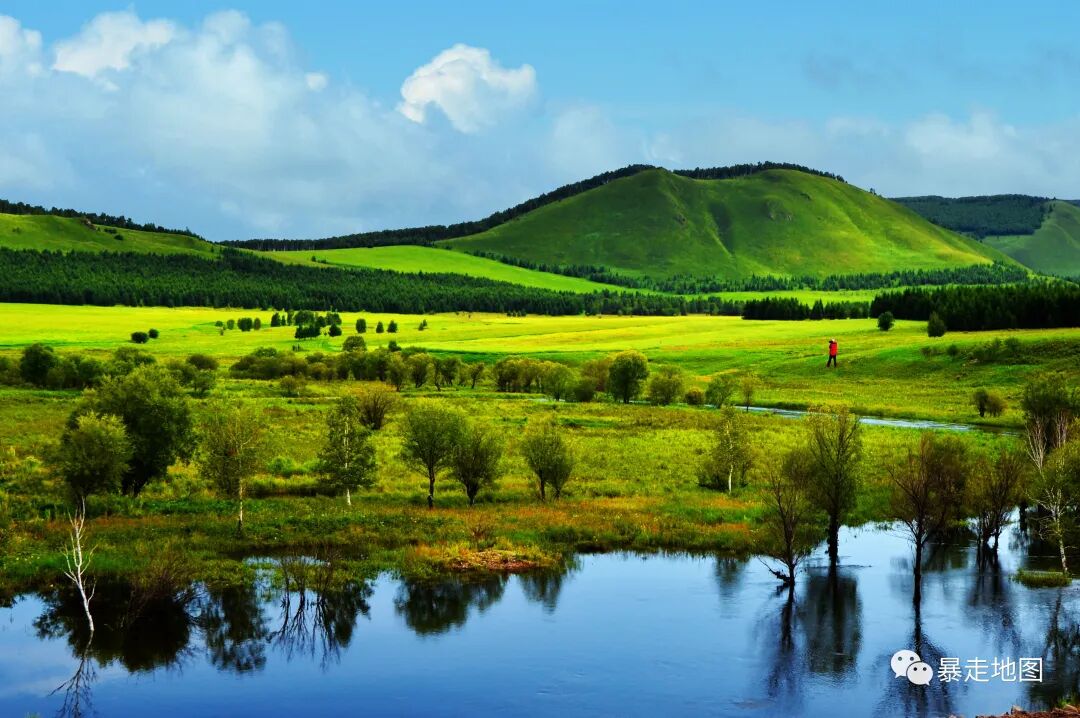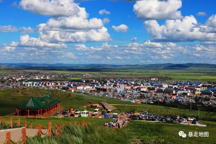从呼伦贝尔主城区海拉尔沿着322国道一路向北,视野豁然开朗,一路绵延起伏的丘陵,草原、湿地、森林第次出现,满目的青翠直到天边;