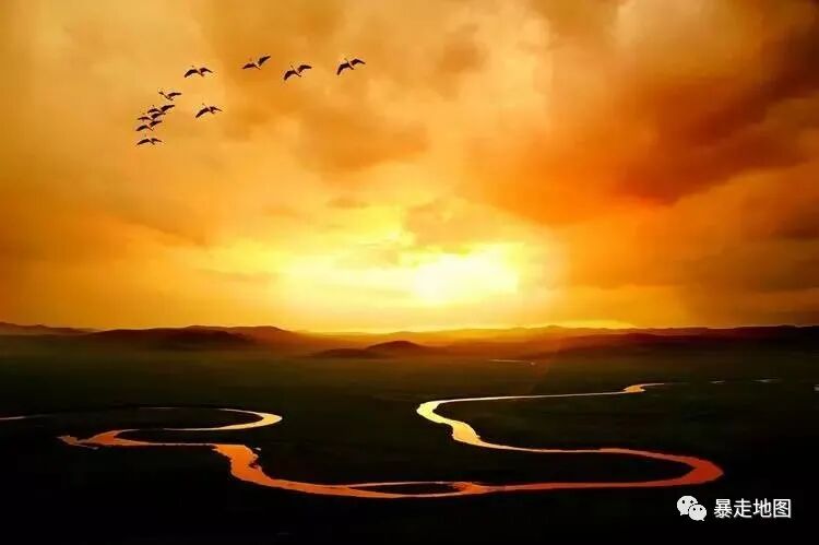 额尔古纳市区往西五十公里有个黑山头镇,黑山头最美的风景就是这里的日落了。站在山头远眺,你可以看到蜿蜒的根河,以及它冲击形成的草原湿地。