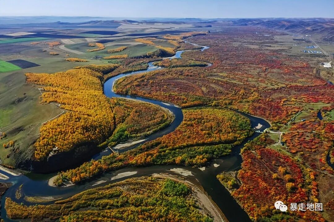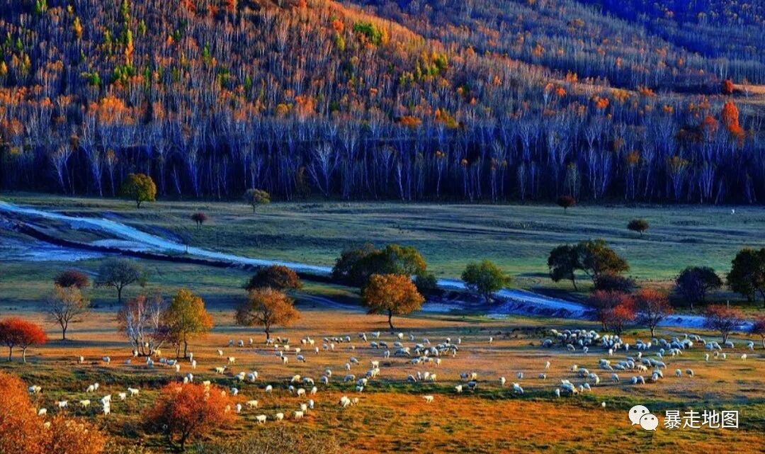 这里丘陵延绵、草原广阔、河流众多、植被茂盛、一年四季风景皆不同。夏季草原青翠、牛羊成群、蓝天碧水,冬季冰封雪飘、银装素裹、万籁俱静。