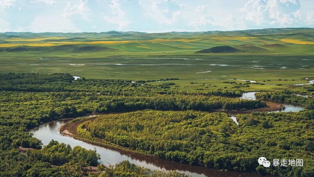 登顶海拔720米的主峰,俯瞰苍茫浩瀚的大兴安岭与广袤无垠的呼伦贝尔草原,根河在草原上迂回流淌。