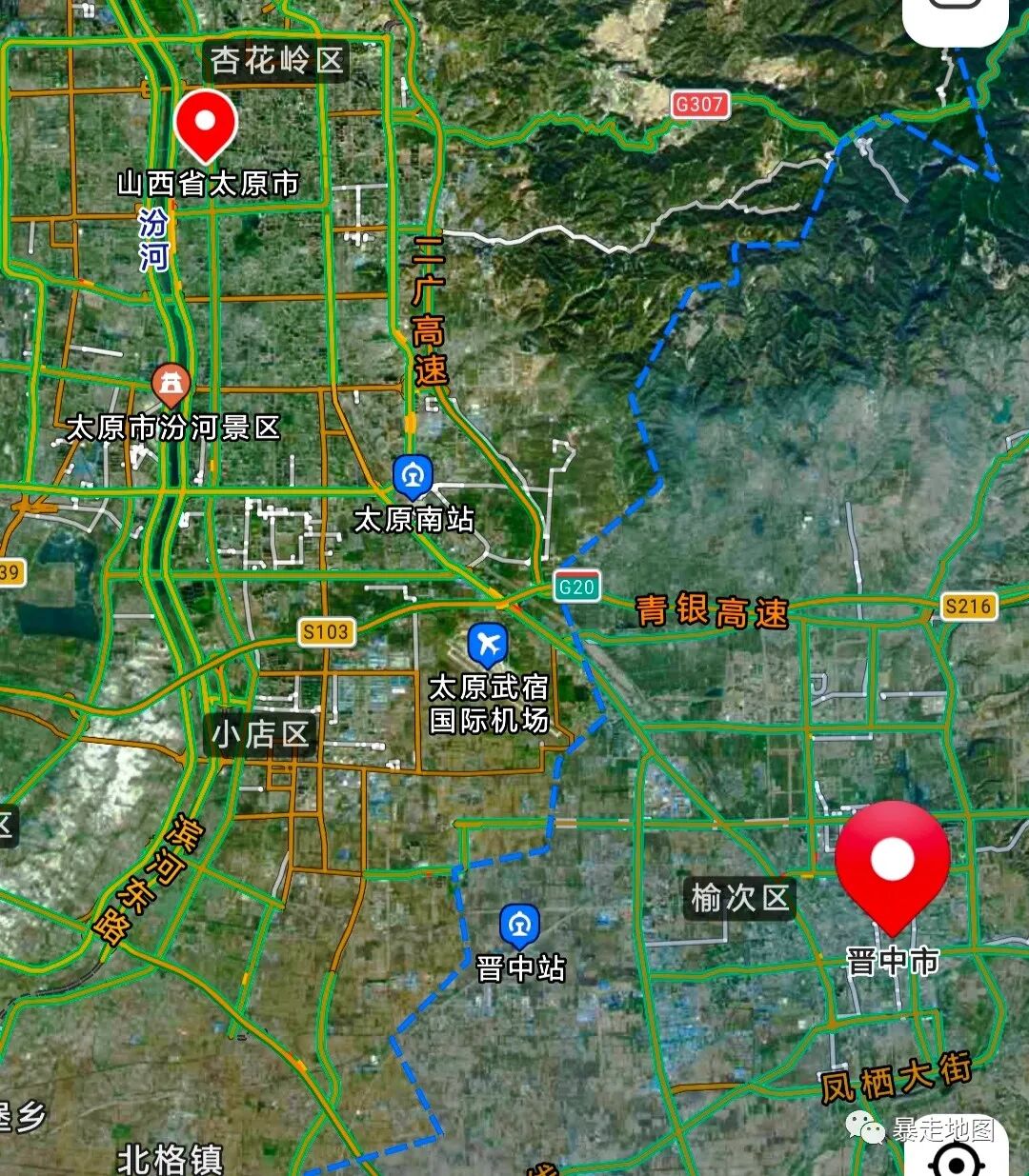 首先我们看看太原和晋中;太原是山西省的省会,晋中位于太原的东南方向,两座城市距离很近,从太原市中心到晋中市中心距离仅32公里,如果从建成区算起的话也就四五公里的距离。