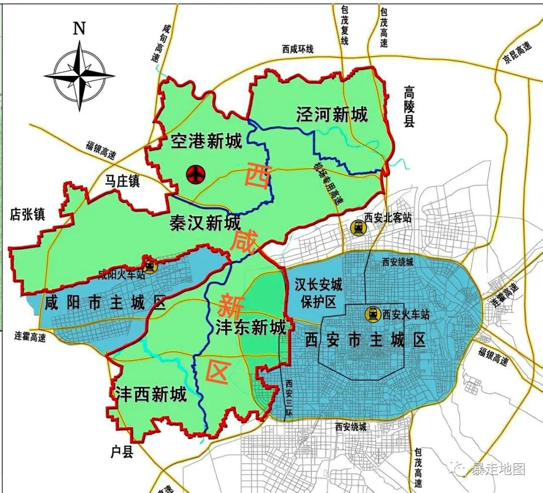 2014年设立了西咸新区,新区就在两座城市中间位置,如今已初具规模,而且两地已实现了地铁互通,不久的将来,两座城市的建成区就能完全连成一片了。