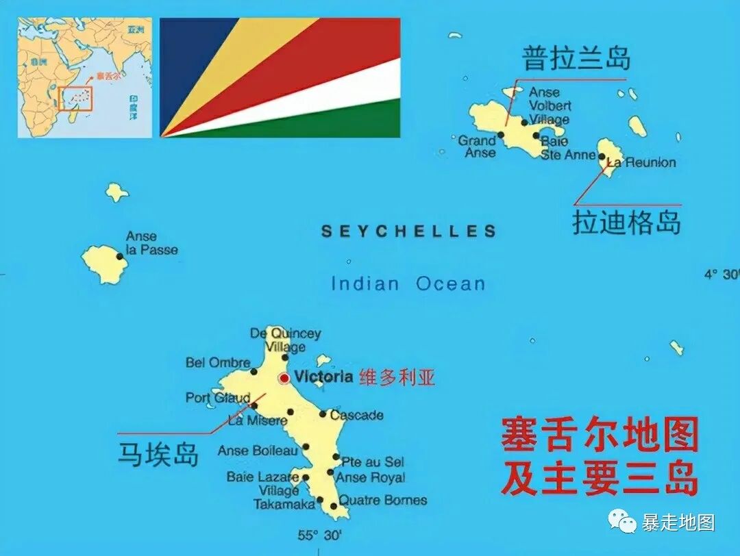 塞舌尔全名为塞舌尔共和国,是一个位于非洲东部印度洋上的群岛国家,西距非洲大陆约1600公里,东距印度孟买2800公里。全国由115个岛屿组成,国土面积约455平方公里,领海面积约40万平方公里,人口仅9.9万。