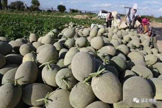 由于这里晴天多,日照时间长,昼夜温差大,非常有利于果实中糖分的积累,这里的瓜果不但个儿长得大,而且养分充足。其实不止哈密,整个新疆出产的瓜果都具有这样的优点。