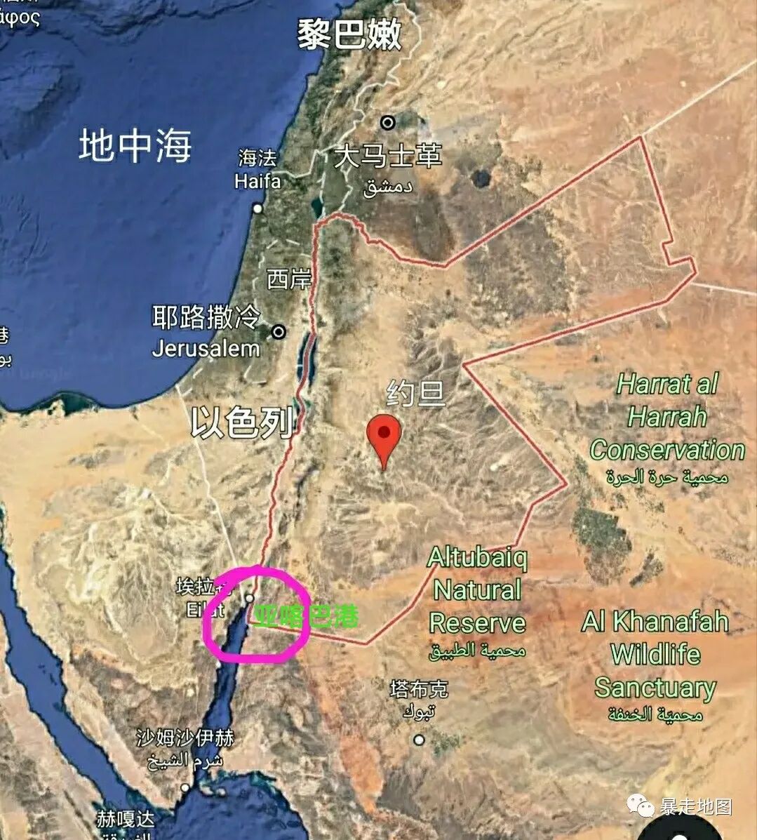 比如约旦王国,地处中东腹地,气候炎热干旱,水资源匮乏,但庆幸的是在红海东北角的亚喀巴湾拥有一小段海岸线,仅有26公里,全国唯一的港口亚喀巴港就在这里。但这仅有的26公里海岸线也是好不容易才争取来的。