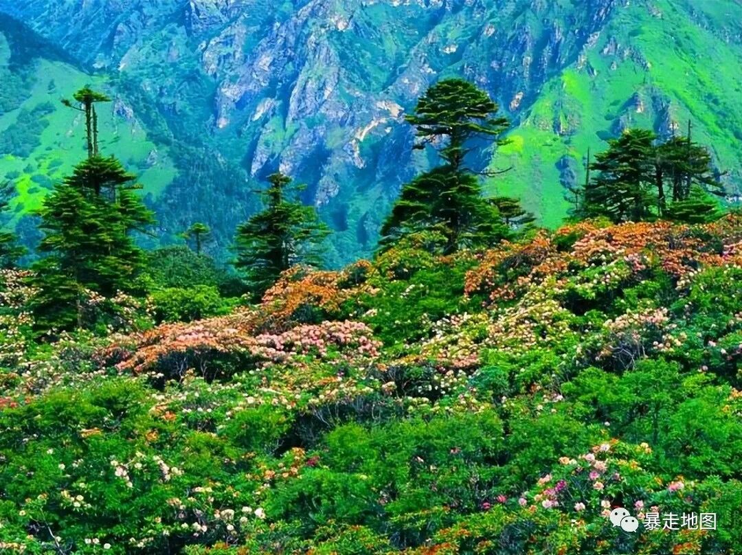 而卓木拉日雪山以南,海拔骤降2000多米,气候出现巨大反差,植被从高山草甸到低矮灌木丛层层递进,到山脚下则出现了大片茂密的亚热带森林。