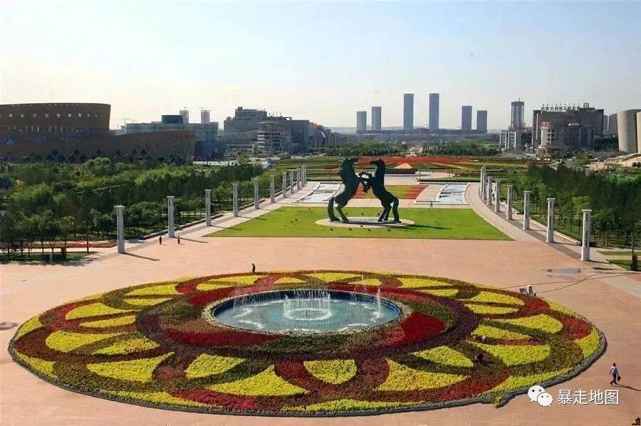 双驹广场、太阳广场、成吉思汗广场、蒙古象棋广场无不让人赞叹其独特的魅力!在公园和广场之间,鄂尔多斯大剧院、博物馆、图书馆等等一座座建筑犹如艺术品,造型别致独特,各具特色,展现出浓郁的蒙古族风情,给人以强烈的视觉享受!