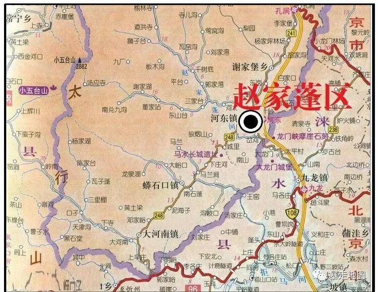 赵家蓬区位于河北省张家口市涿鹿县南部,区公所驻河东镇河东村,也就是著名的南山区公所。