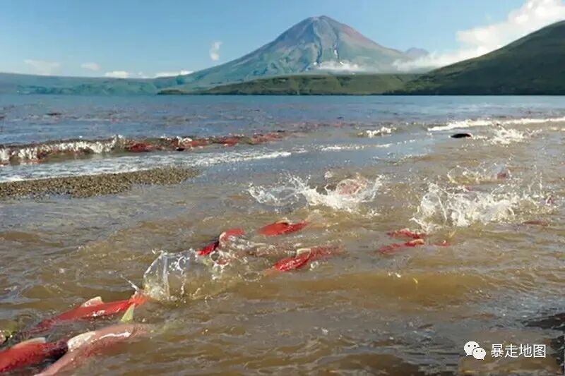 堪察加有全球最大的鲑鱼群,神秘堪察加鲑鱼在海洋里长大后,仍要回到它们的出生地的河流里繁殖后代。每年7月中旬至8月初,数十万尾鲑鱼沿勘察加河入海口逆流而上200公里,洄游至半岛中部的库叶湖。