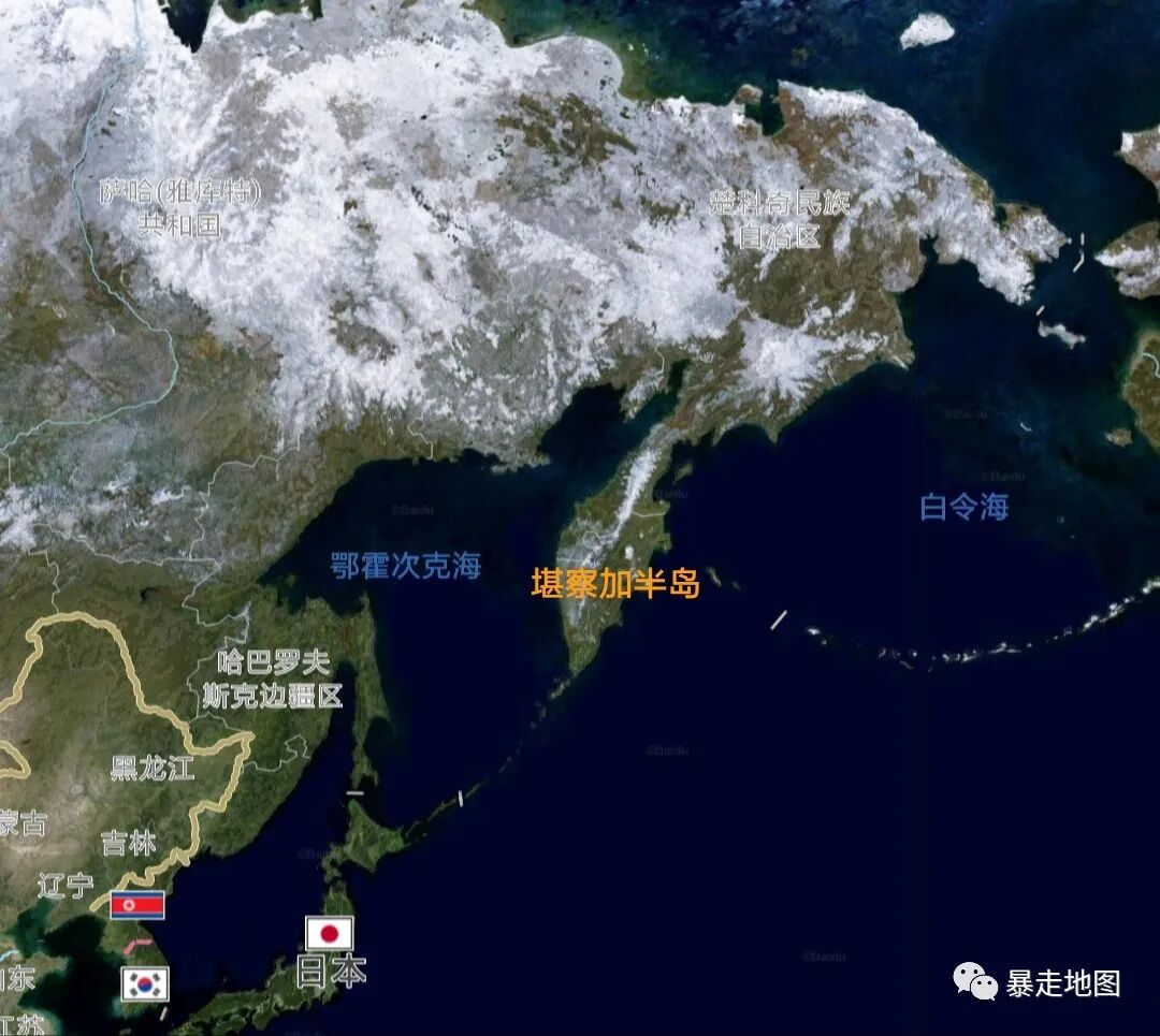 堪察加半岛就位于西伯利亚东北部,从东北向西南延伸了1300多公里,面积达到了37万平方公里,与日本全国土地的面积相当,半岛南宽北狭,仅东北部有狭窄的地峡与大陆相连。