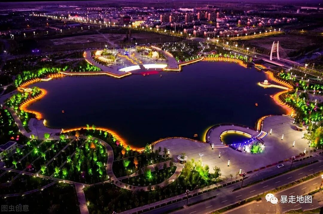 城市虽小,但各种生活配套设施也是一应俱全,其他城市有的这里也都有;市中心有一个巨大的胡杨湖,湖岸青草茵茵,绿树环绕,城区沿着湖岸铺展开来,城外则是大片的农田。种植着棉花、小麦、玉米。