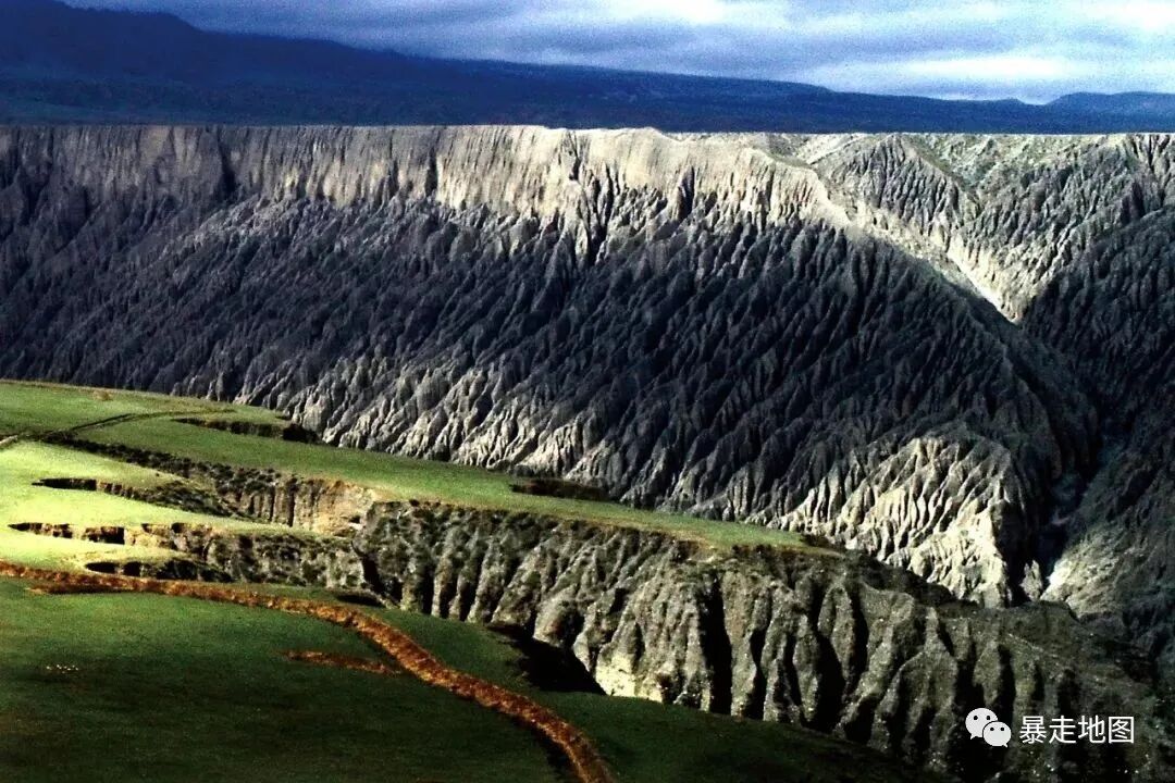 犹如雕塑一般的峡谷沟壑,就像被刀在大地上割开的一道裂口,四周都是悬崖峭壁,在天山雪水及雨水亿万年的冲刷下,呈现出一副惊心动魄的历史画卷,远眺整齐有序,近看又仪态万方。