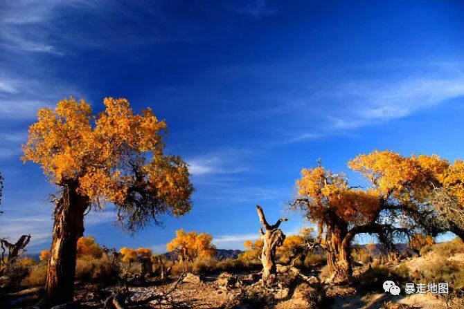 这里河谷幽深、水道曲折、一壑碧翠、满目形态各异的胡杨,或密布成林,或挺拔于峡谷之中,深沟之上,或兀立于水道之间,这里也是全国及全疆少有的一片水中胡杨林景观!秋季的胡杨林是最美的时候,层林尽染,胡杨披金;