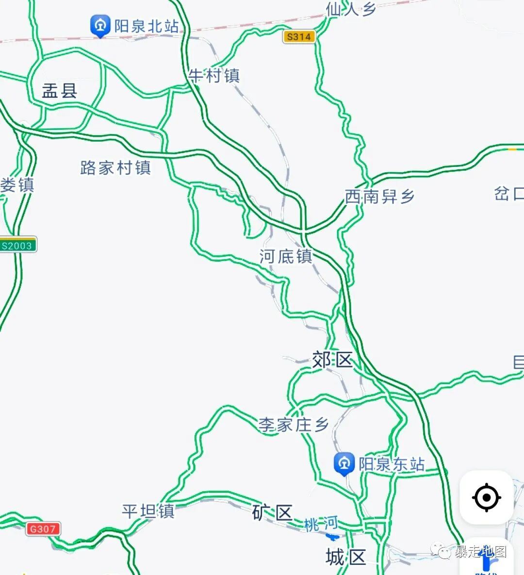 不过还好市区与阳泉北站之间有专线公交接驳,单程约45公里,走高速耗时约60-75分钟。