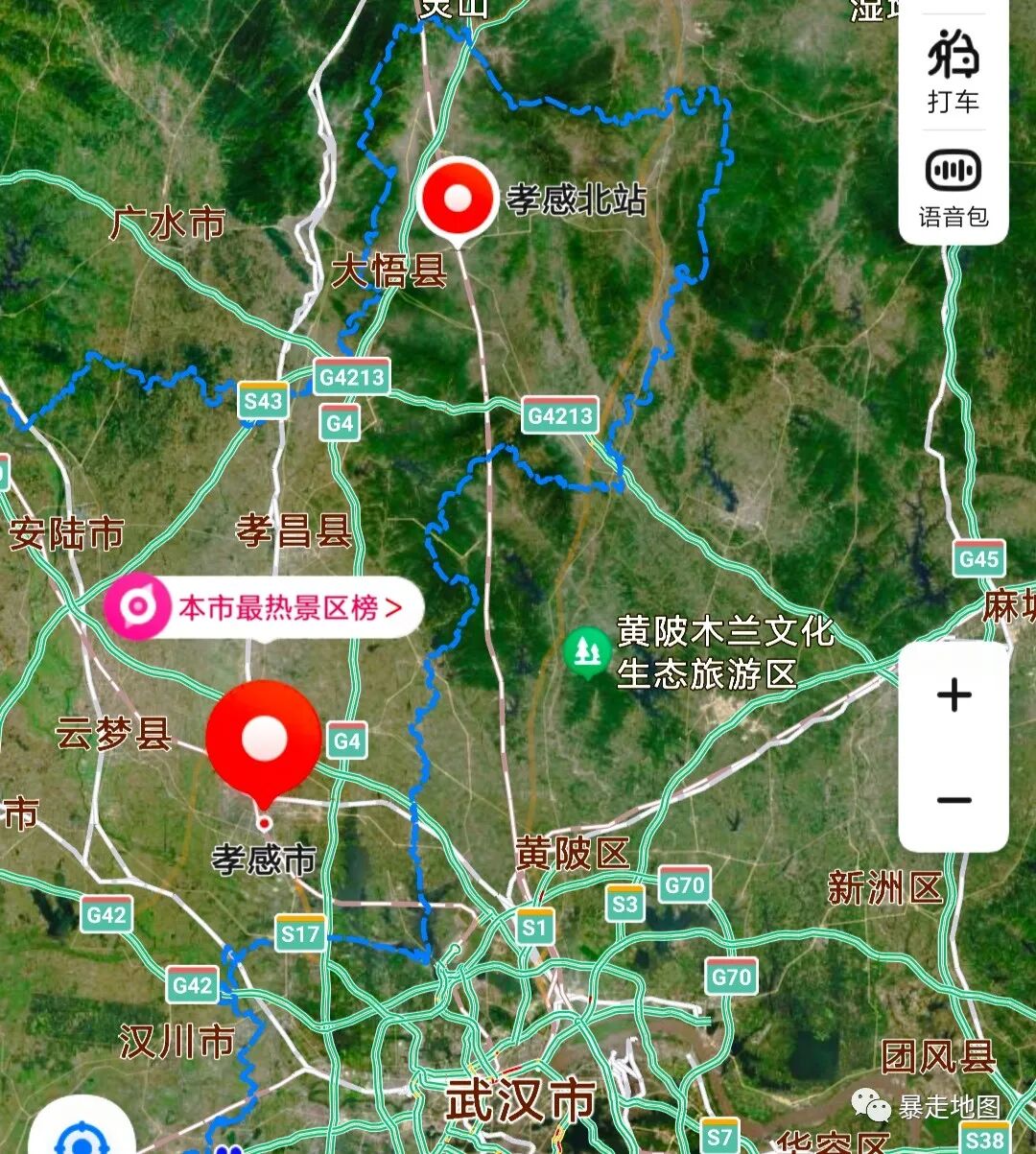 本来从武汉到孝感市区也才70公里,这怎么到站了距离市区100公里了,一看地图才知道,干过头了,从孝感北站到孝感市区比从武汉到孝感市区还要远!