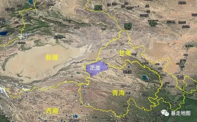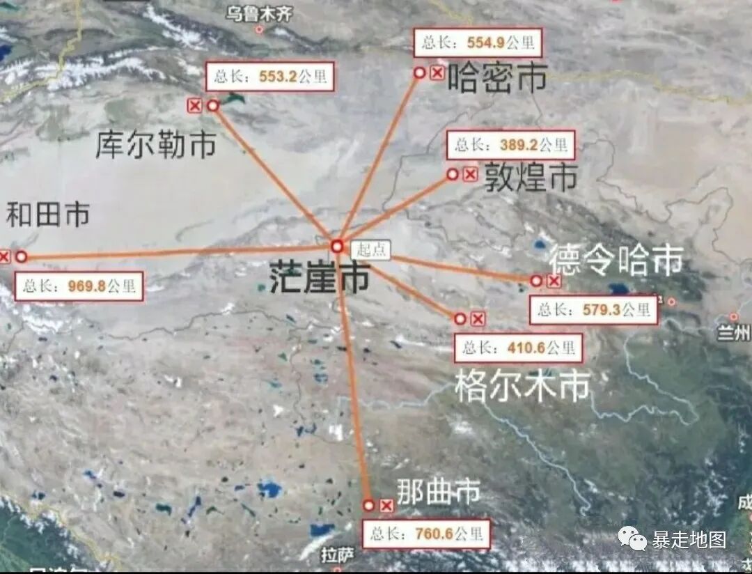 而反观茫崖,距离海西州府德令哈直线距离579公里,距离省会西宁达到了1100公里以上,最近的城市是甘肃省的敦煌市,直线距离也达到390公里。