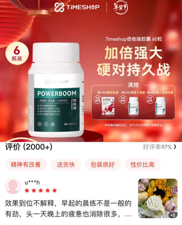 如今国产倍他强的价格不到原来的5%,还通过亰东进入普通家庭,上线一个月就达成千万成交。其中72%是来自一二线城市中的已婚男性,翻阅评论区,多“终于能让老婆满意”、“早晨更有劲了”等正向反馈。