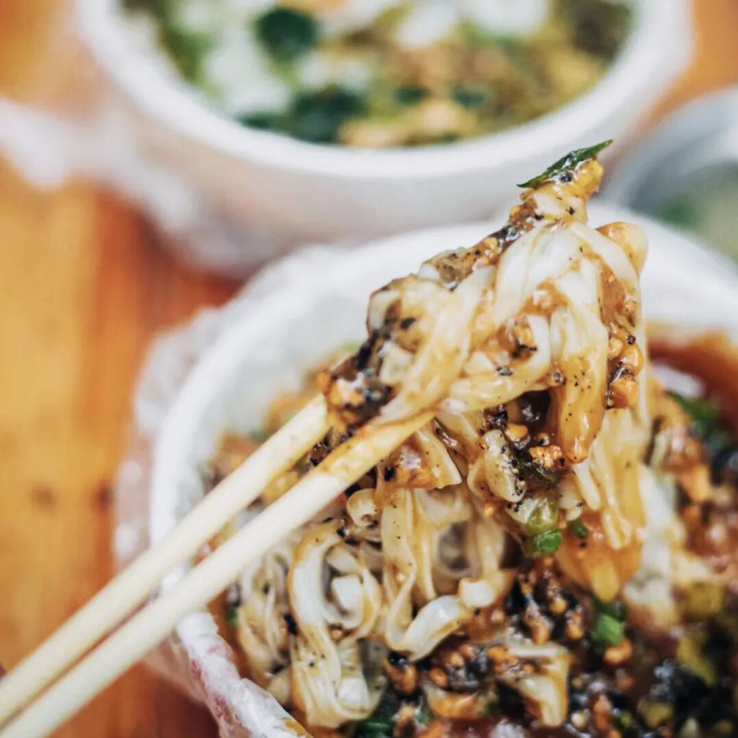 “东方市限定”,首推露面。这是当地人从小吃到大、非常喜爱的美食。其实“露面”非“面”,而是腌的河粉,不同于海南其他地方炒制的河粉,灵魂是在煮好的粉上浇一大勺酱汁:花生碎、芝麻碎、榨菜、肉末、葱花以及特色酱料。