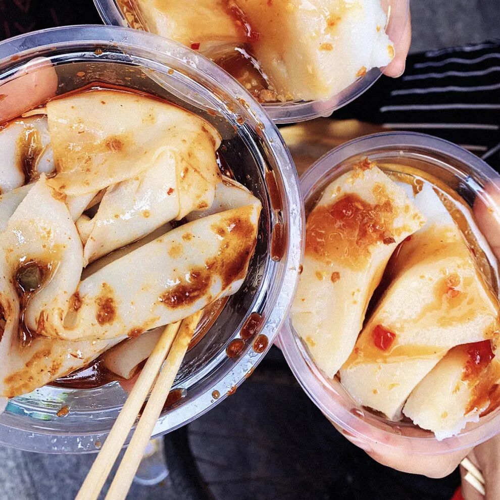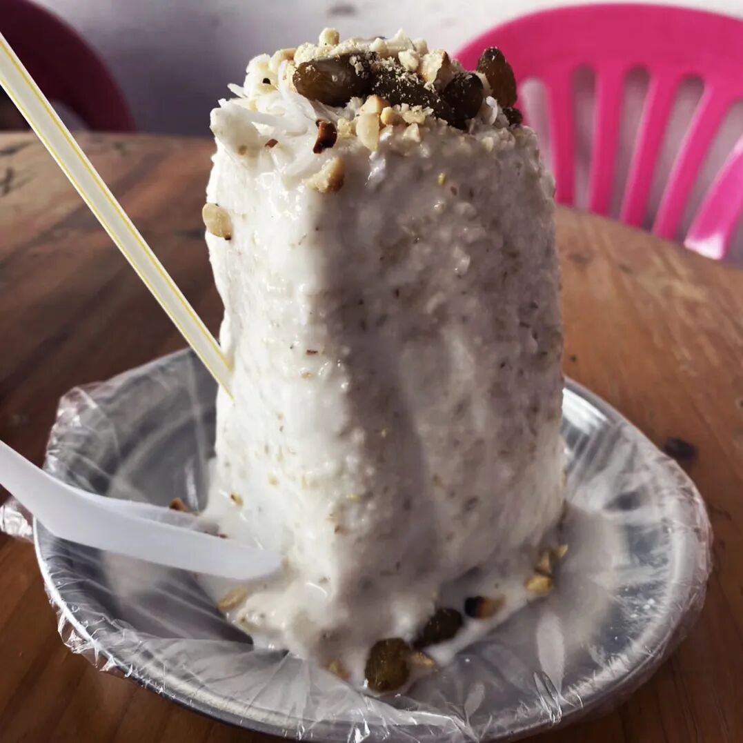 海南人把糯叽叽的“白糕”称作白Bua。将磨好的山米浆三蒸三出,出锅后淋上蒜头油,晶莹剔透香气四溢,再蘸上自家调配的辣酱和醋,果香浓郁,完美地中和了糯叽叽的口感,而且越吃越开胃!