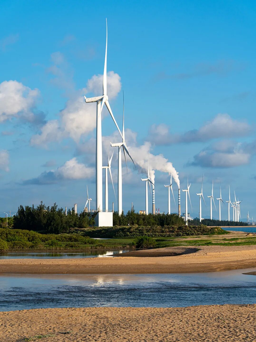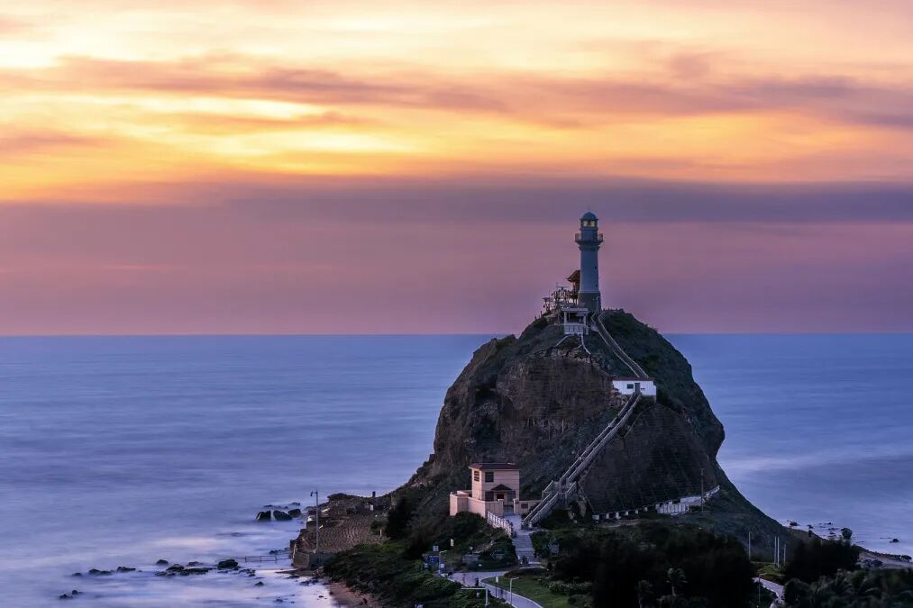 这片海位于海南最西端的尽头,可以与越南隔海相望,也是全岛看日落最佳的观景点。如果想看得更远,还可以登上鱼鳞洲的灯塔,俯瞰北部湾,将海滩上的排排风车尽收眼底。