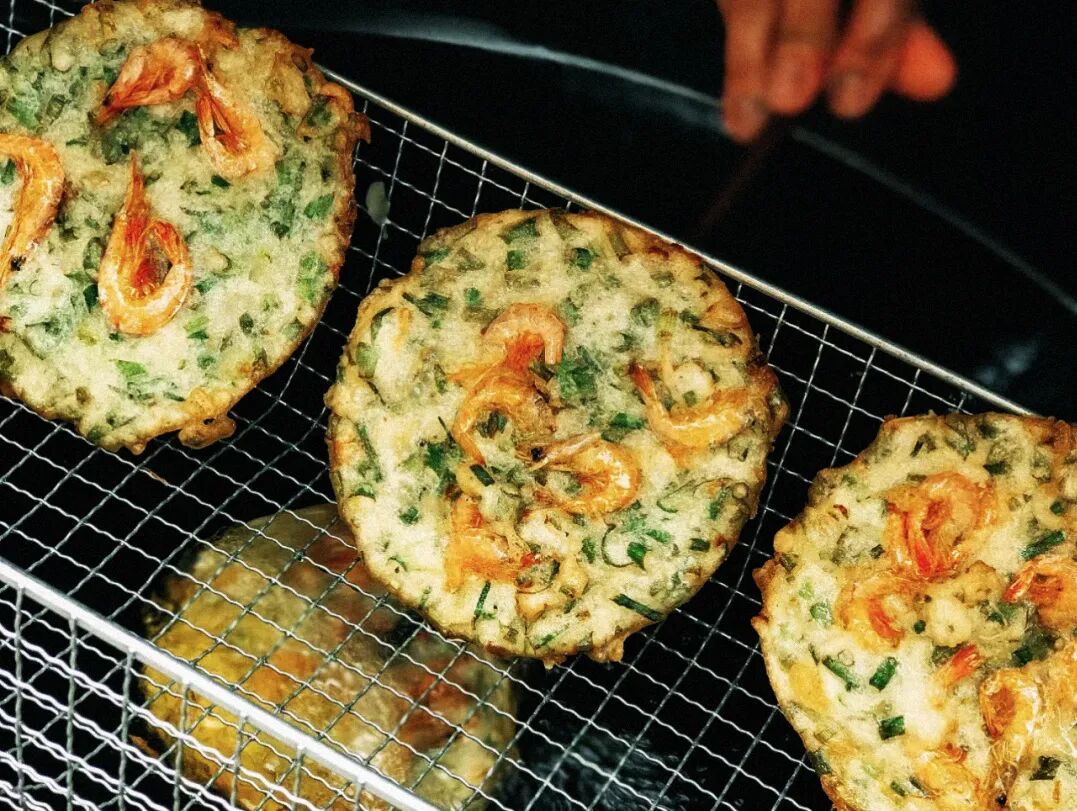 2块钱的炸虾饼也推荐一试,每一张小饼的正中间都是一整颗虾,趁热咬上一口,Q弹的虾仁混着油香迸发在嘴巴里。