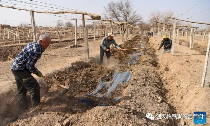 今年春天正在扒土复活葡萄的新疆老铁(新华社的图)