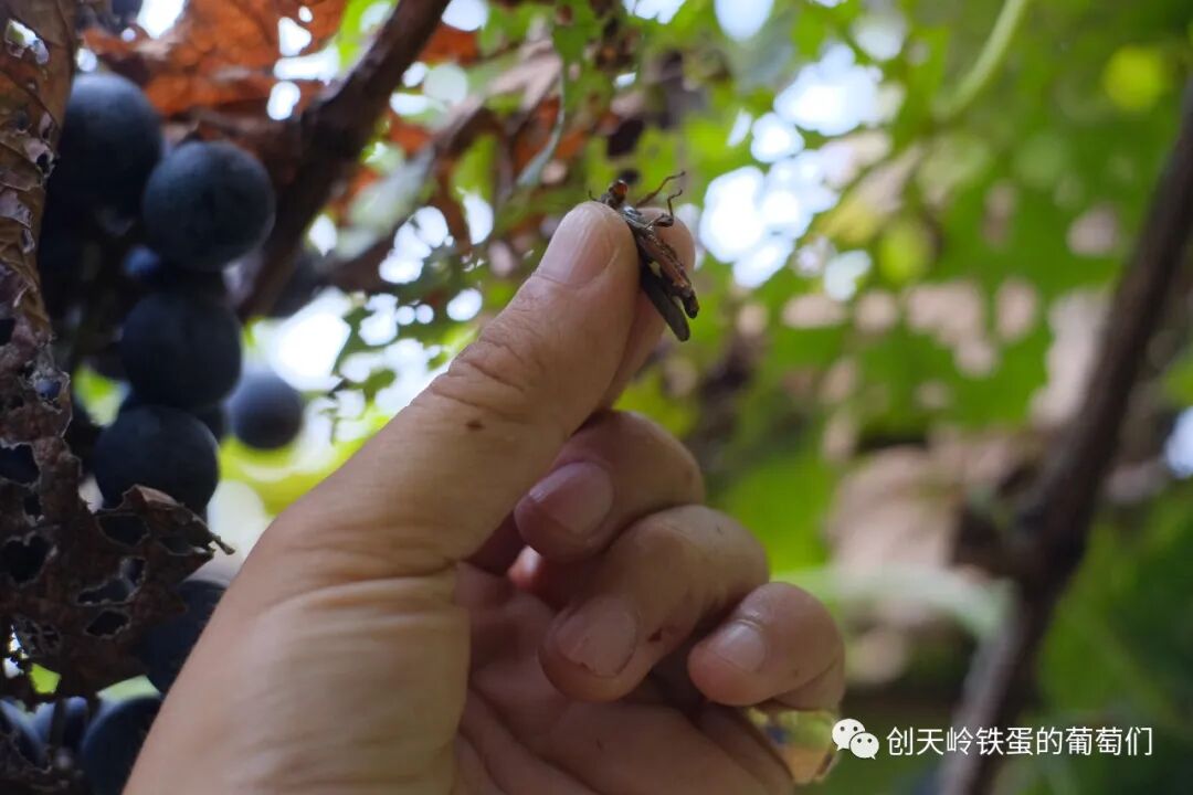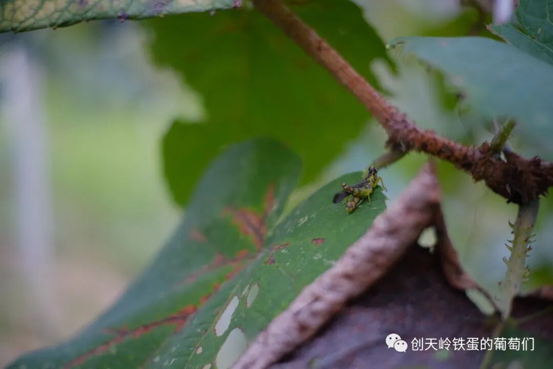汝食吾葡萄,吾教汝吐血。用拇指与食指夹住其胸腔最硬实处,稍一用力,早有嘎崩脆的骨头碎裂感从指尖传来,嘴边一口带着葡萄味儿的老血喷涌着挂在下巴成一包。腿脚只用力蹬了一下空气,也是动的,模样也还完整,这时候不动声色地将它又放回葡萄叶片上。暂时也是活的,就是眼神有些迷茫,内心很受伤,好像卖眉笔翻了船的李老师一样,仿佛精气神儿不如当初了。