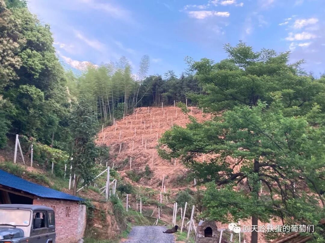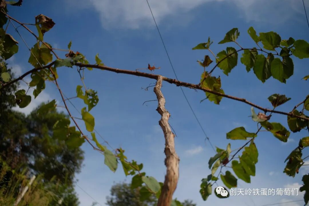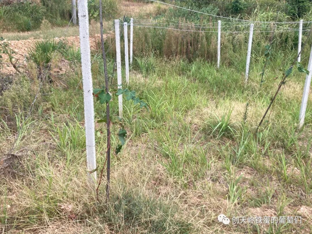 而同一年种下去的葡萄苗在其它区域,今年长得俊秀挺拔,爬满了架。